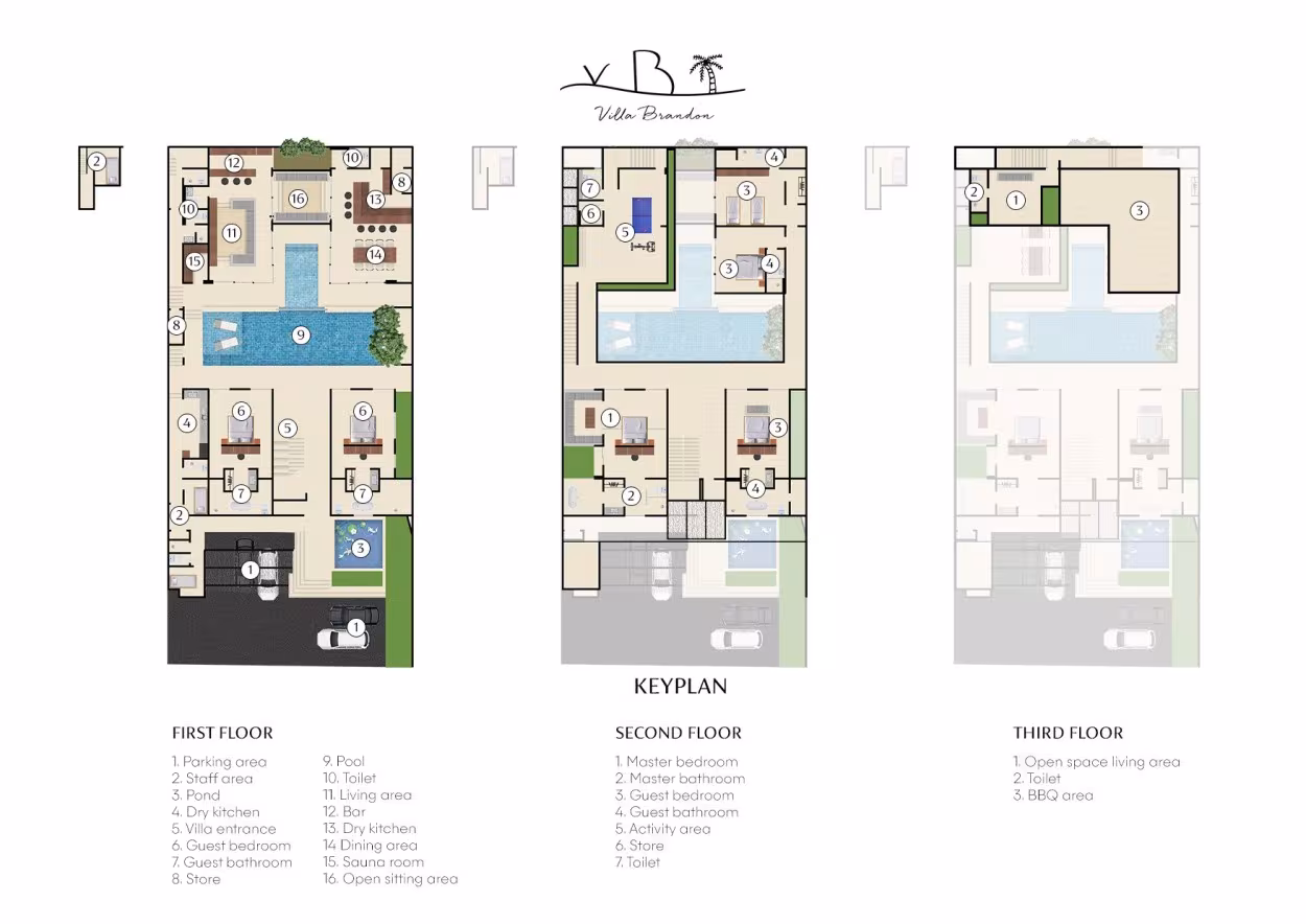 Imagine regresar de un día de exploración y sumergirse directamente en la piscina, cuyas aguas reflejan el azul del cielo. Flanqueada por dos dormitorios y una amplia sala de estar al aire libre, el área central de la villa invita a la relajación en cada rincón. Si busca bienestar y rejuvenecimiento, la sauna privada junto a la piscina es un santuario perfecto para desintoxicarse y renovarse al comienzo o al final del día.
