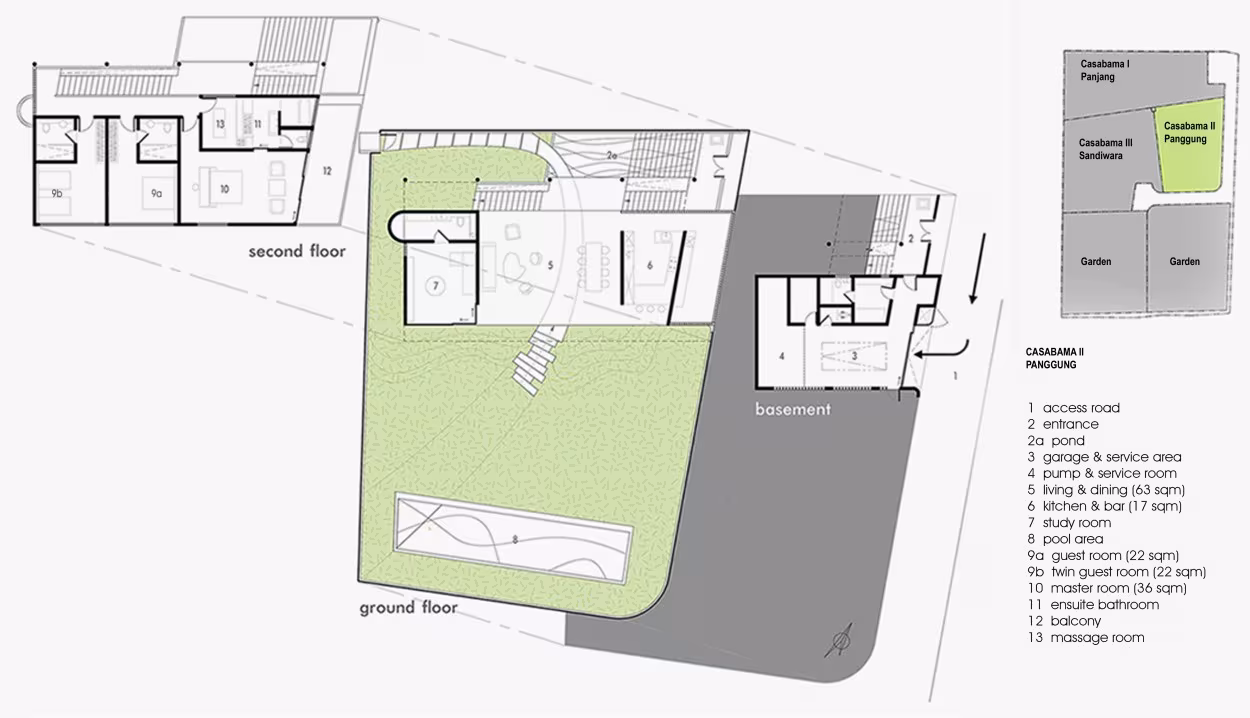Inspirée par les villages traditionnels balinais, la villa intègre des éléments issus de l’architecture locale, combinés à un design moderne original, un style raffiné et une attention particulière au confort. Villa Casabama II Panggung est entièrement autonome avec une entrée privée, un terrain indépendant, un garage et une piscine, tout en restant facilement accessible via un portail commun vers les villas voisines si nécessaire. Un gymnase bien équipé et une salle de yoga, situés à l’entrée du domaine, sont partagés par les trois villas du complexe. Entre les villas et l’océan se trouve une magnifique cocoteraie verdoyante, parfaite pour des mariages romantiques et des événements spéciaux.